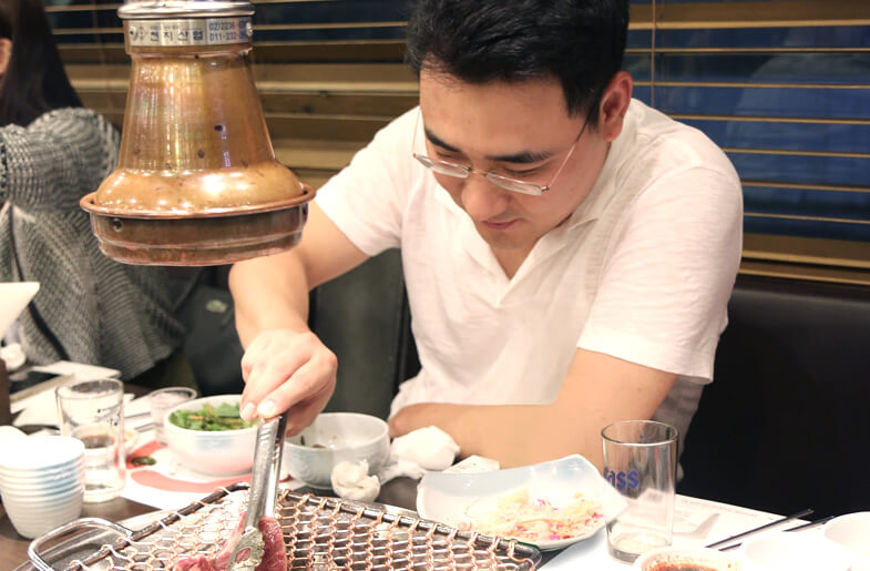 그리고 회식을 하게 되면 이렇게 직접 고기를 구워줍니다.