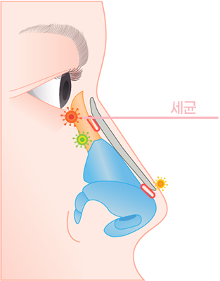 돌출되어 있는 콧등은 매끄럽게(DOWN) 해주는 삼성드림이비인후과의 원스텝 코성형 시스템!